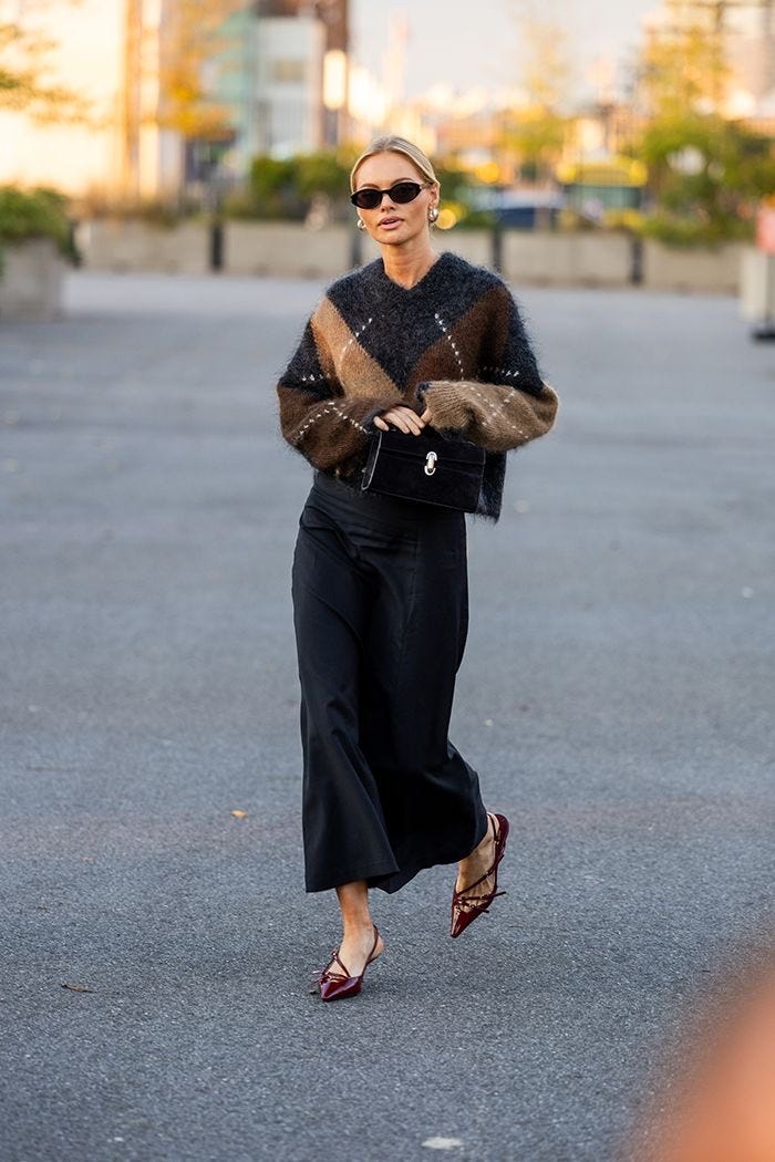 I love styling a silk bias skirt, this one looks great with the kitten heels. Fabric contrast is a great way to lift up your outfit, silk and smooth wool work well together as an elegant combination. The little clutch adds a chic touch to the outfit, and can bring it from day to night.