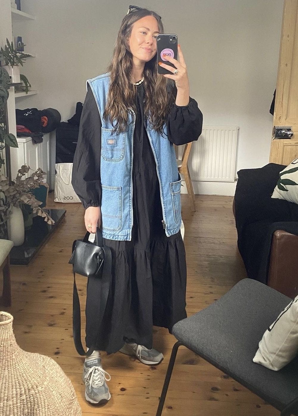 I like a sleeveless denim jacket, I see them a little bit in the street in Paris this time of the year and I think they are a fun way to relax a dress.